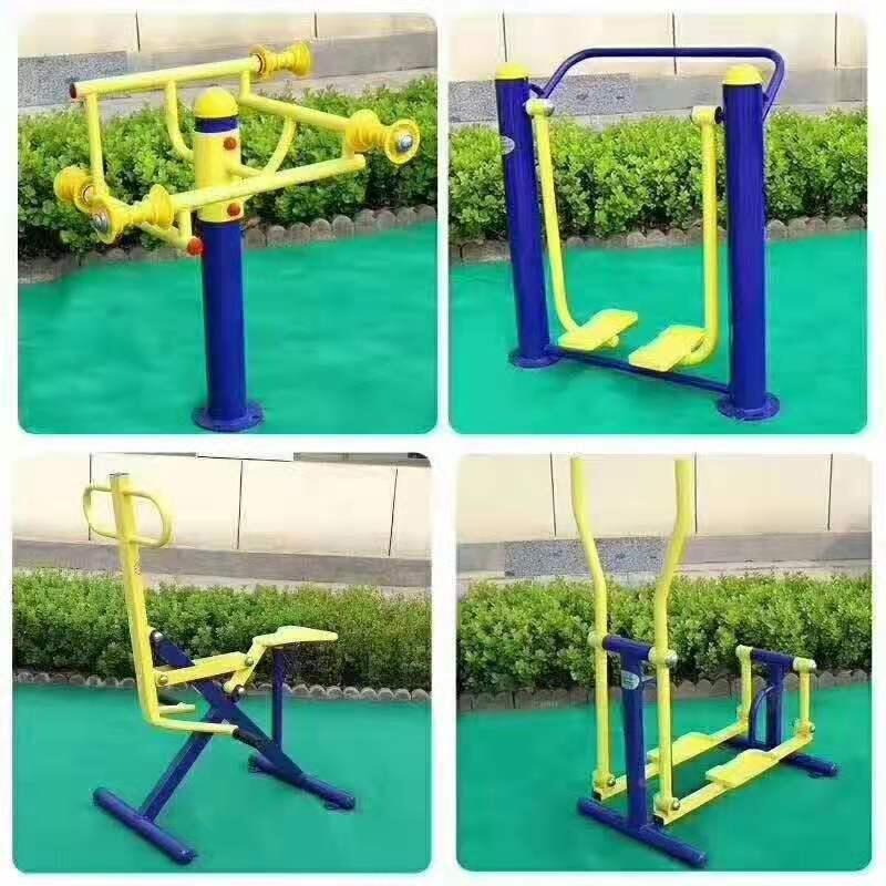 室外健身器材种类较多,现市场上常有:腿部按摩器、坐拉器、滑雪器、坐蹬器、三位上肢牵引器、悬空转轮、双人儿童跷跷板、腰背按摩器、双人儿童秋千、双人腹肌板、腰背伸展器、双人浪板、双人双杠、三位转腰器、单柱健骑机、坐式按摩器、联动健身车、儿童大荡椅、立式跷跷板、坐立式按摩器、爬杆、举重架、上肢牵引训练器、单柱儿童秋千、引体训练器、三人旋转轮、腹肌训练器材、四级压腿按摩器、三人压腿器、太极推盘、三位转腰器、伸背架、漫步器、双人大转轮、高级健跑机、坐推器、倒立器、太极轮、儿童转椅、摸高架、下肢康复器、自重扩胸训练器、自重上肢推力器、自重踢腿训练器、自重前推训练器、自重上肢拉力器、自重下肢蹬力器、坐式腰背按摩器、双联晃板、自重下压锻炼器、呼啦圈、健跑机、健身车、坐立式扭腰器、推手、太极推揉器、腰背按摩器、晃板、三位扭腰器、双位扭腰器、二位太空漫步机、三位扭腰器、摸高架、扭腰踏步器、爬网、绳梯、空中吊环、吊环、翘翘杆、云梯、臂力训练器、单杠、三位单杠、双人腹肌板、单人腹肌板、跑步机、单位漫步机、太极推揉器、三位落地式漫步机、C型云梯、伸展器、坐式拉力器、双人划船器、坐推器、提拉训练器、推举训练器、下压训练器、四联康复器、坐蹬器、小腿训练器、平步机组合、跷跷板、半圆脚踏梯、云梯、扭腰跑步机、攀岩器、儿童休闲荡椅、四位休闲荡椅、二位休闲荡椅、儿童秋千、上肢牵引器、单杠、双杠、秋千、荡椅、天梯、肋木架、太空漫步机、健骑机、跑步机、椭圆漫步机、户外康复器、户外按摩机、组合训练器、仰卧起坐床、跷跷板、爬绳、爬杆、吊环、网墙、攀岩墙、踏桩、平衡木、浮桥、浮动踏桩、滑道、摸高横梁、悬空转轮、弹振压腿器、固定式儿童滑梯、儿童组合乐园等。