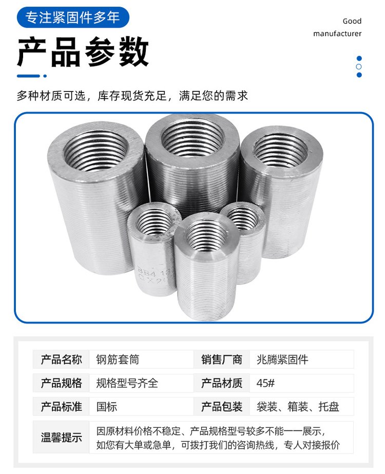 直螺纹钢筋套筒连接头新国标22/25/28/32mm正反丝变径四级钢套筒 品牌 | 兆腾 | ||