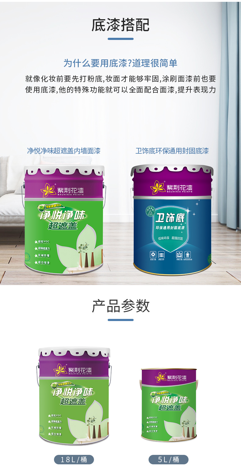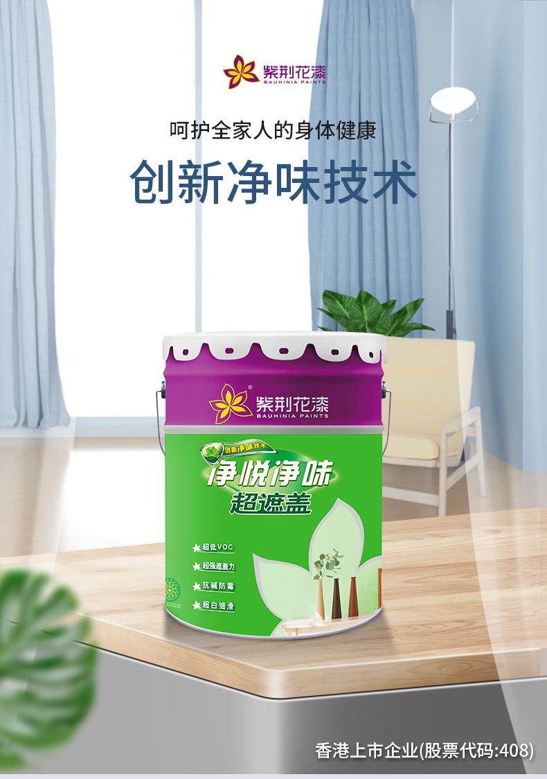 特色服务 : | 厂家负责施工技术指导 | 净悦净味超遮盖墙面漆 : | 紫荆花乳胶漆二合一净悦净味墙面涂料 |