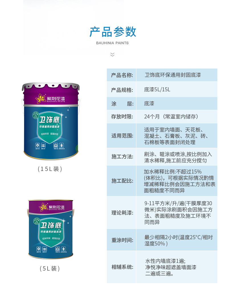 特色服务 : | 厂家负责施工技术指导 | 卫饰底环保乳胶漆 : | 紫荆花漆卫饰底环保乳胶漆 |