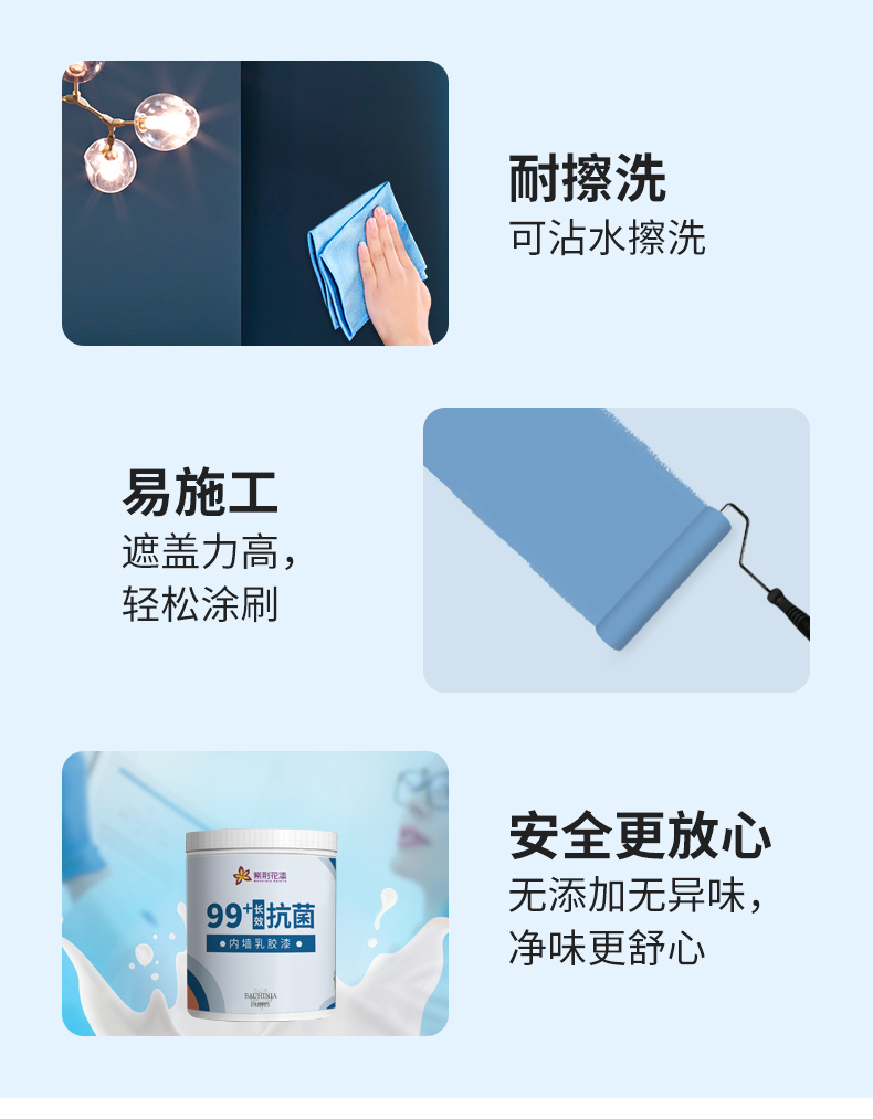 特色服务 : | 厂家负责施工技术指导 | 涂倍安99杭菌墙面漆 : | 紫荆花 99抗菌内墙小罐白色乳胶漆 |