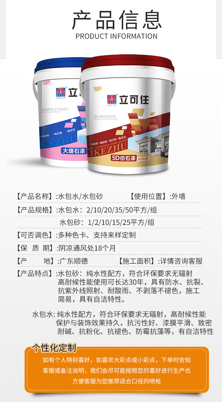 立可住仿石漆水泡水 : | 外墙水包水多彩仿大理石漆 | 供货地 : | 湖南 |