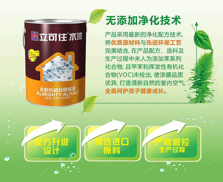 特色服务 : | 厂家负责施工技术指导 | 抗碱封闭底漆 : | 立可住内墙乳胶漆 全能杭碱封固底漆 |