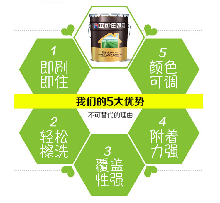 特色服务 : | 厂家负责施工技术指导 | 超易洗环保墙面内墙漆 : | 立可住超易洗环保墙面漆 内墙墙面漆 |