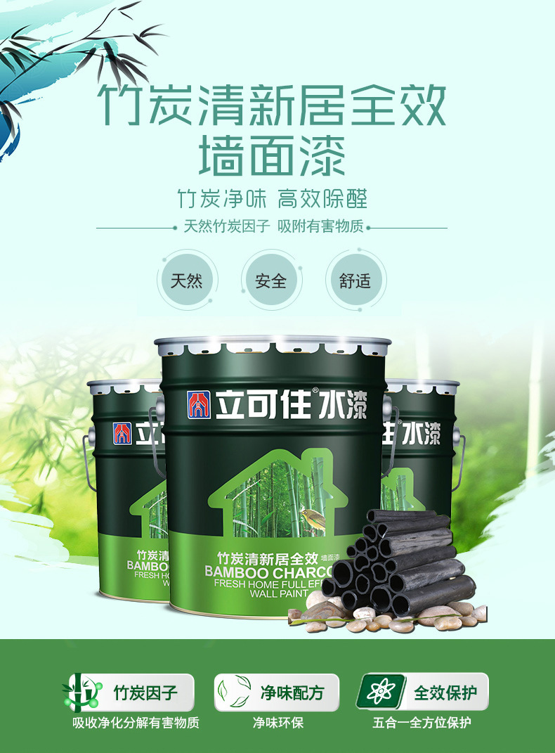 立可住白色竹炭内墙漆 家装水性哑光漆 竹碳具有疏松多孔隙结构 质地坚硬 有很强的吸附力 能净化空气 清除异味 吸湿防霉