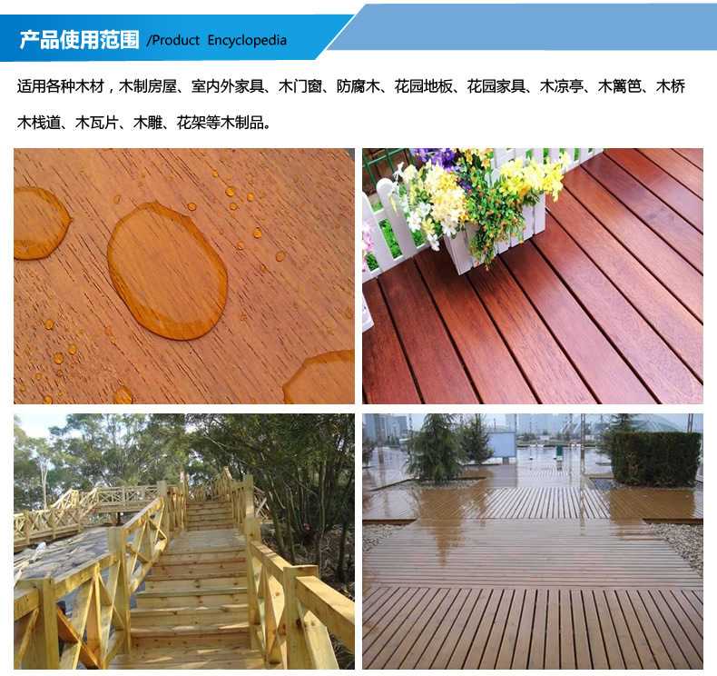 功能 : | 木器材防腐 | 用途范围 : | 户外境观木器材 橙子 花架长廊等 |