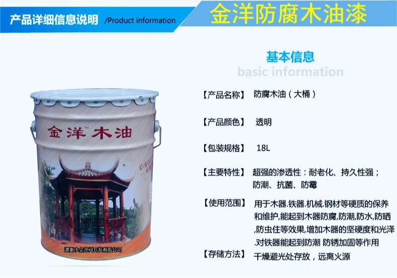 特色服务 : | 厂家提供技术指导 | 金洋水性木油 : | 金洋牌 水性木油 水性防腐木油 |