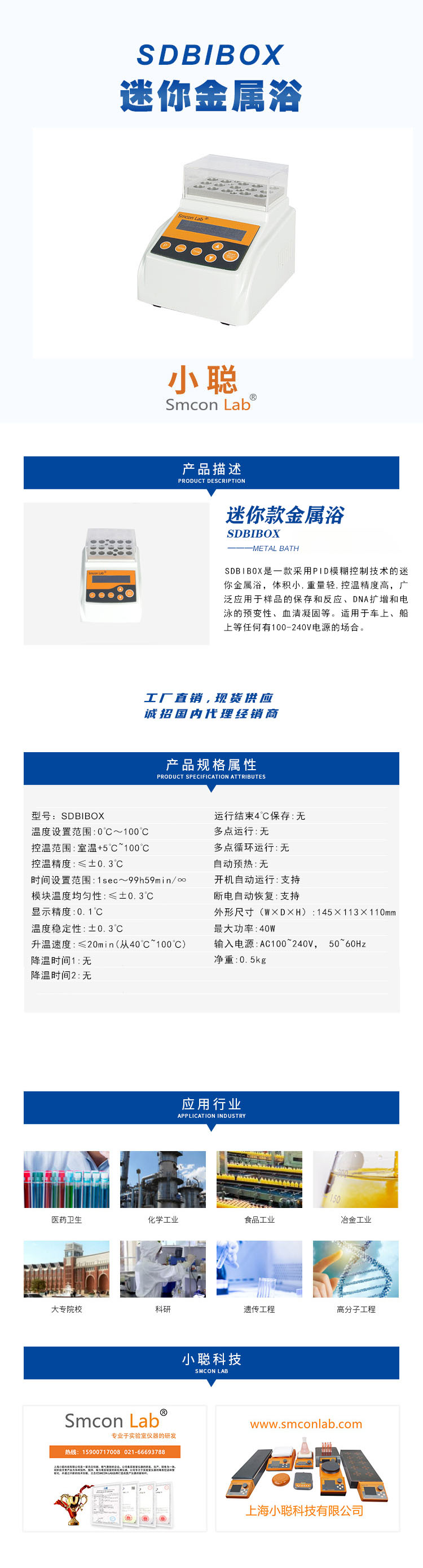 温度设置范围: 0℃~100℃控温范围: 室温+5℃~100℃控温精度: ≤±0.3℃时间设置范围: 1sec~99h59min/∞模块温度均匀性: ≤±0.3℃显示精度: 0.1℃温度稳定性: ±0.3℃升温速度: ≤20min(从40℃~100℃)外形尺寸(W×D×H: 145×113×110mm