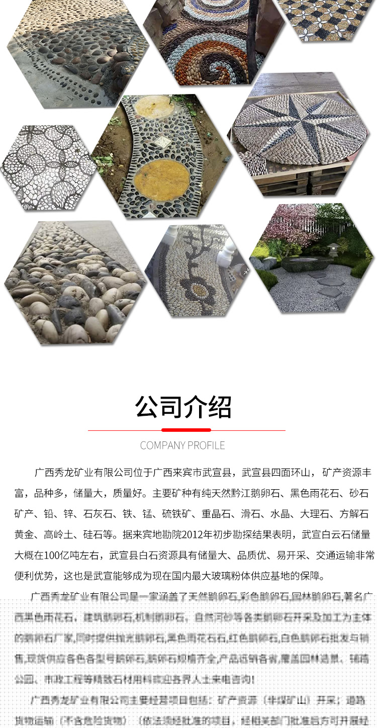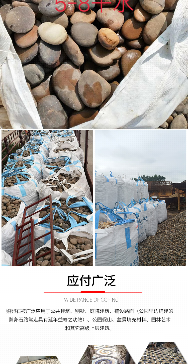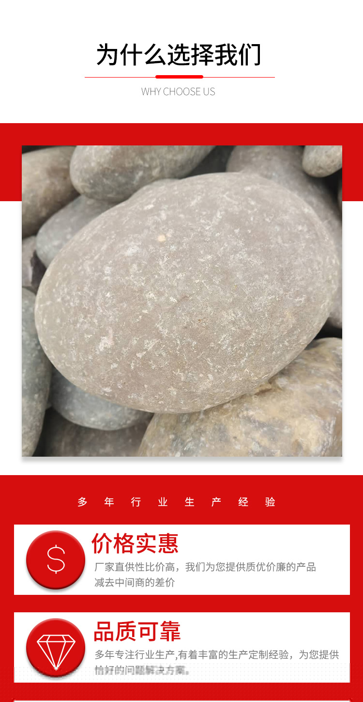 用途 | 一般用于公园造景,铺路,绿化,变压器鹅卵石用料等用料 | 类型 | 鹅卵石 | 品牌 | 秀龙矿业 |