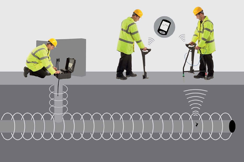 接收机可以在大30公里(19英里)的范围内定位这种特殊信号来识别管道的位置和深度.一旦管道被定位,技术人员就可以绘制沿管道的泄漏电流图,显示出信号电流大小和方向,从而迅速的确定防腐层破损.确定了管道的破损段之后,使用A字架,可以进一步将破损位置和深度确定在1米(3英尺)的范围内。