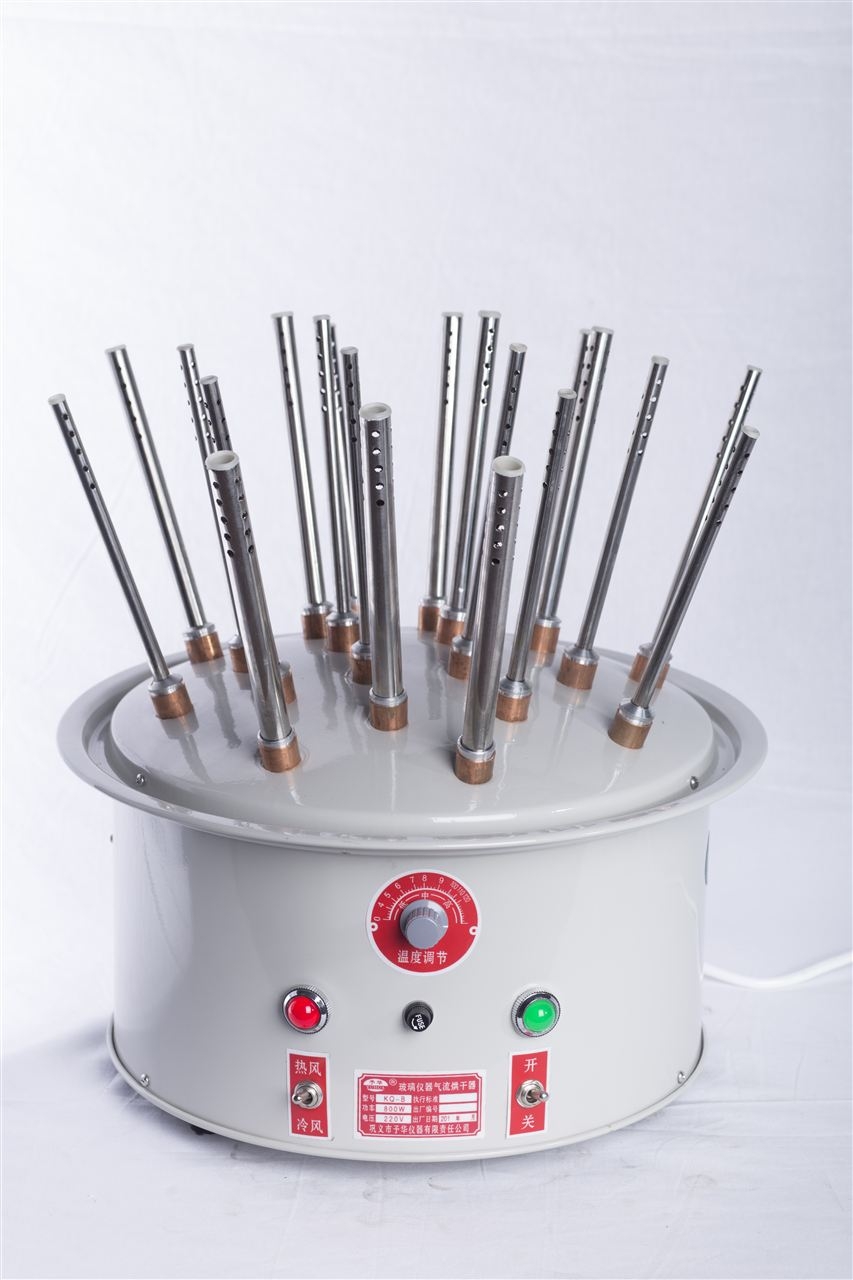 天津予华KQ-B12 B20 B30气流烘干器是使用玻璃仪器的各种实验室、化验室干燥玻璃仪器的适用设备。填补了国内kong白,它具有快速、节能、无水渍、使用方便、维修简单等优点。该烘干器为B、C型二种型号。B型为改进新型,有调温自动控制装置(可调温40-120℃),C型为全不锈钢调温型。