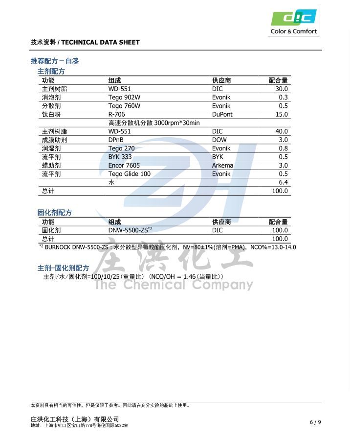 WD-551日本DIC水性树脂 水性聚氨酯 羟基丙烯酸 水性工业漆 水性木器漆 庄