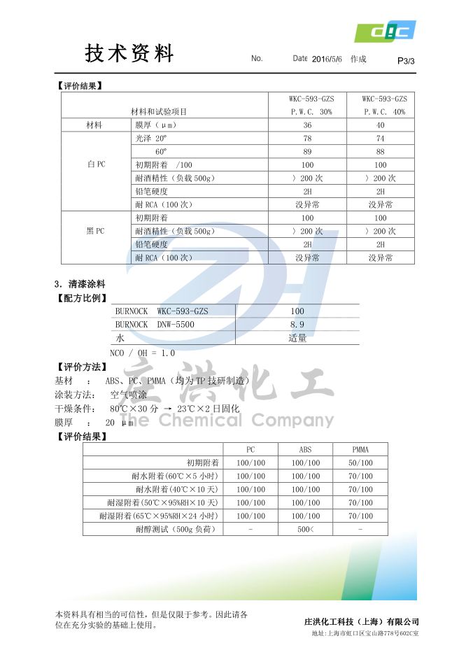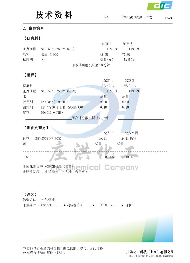 DNW 5500/WKC-593-GZS日本DIC水分散型异氰酸酯固化剂 水性2KPU 水性木器漆