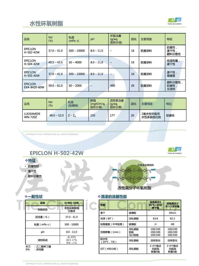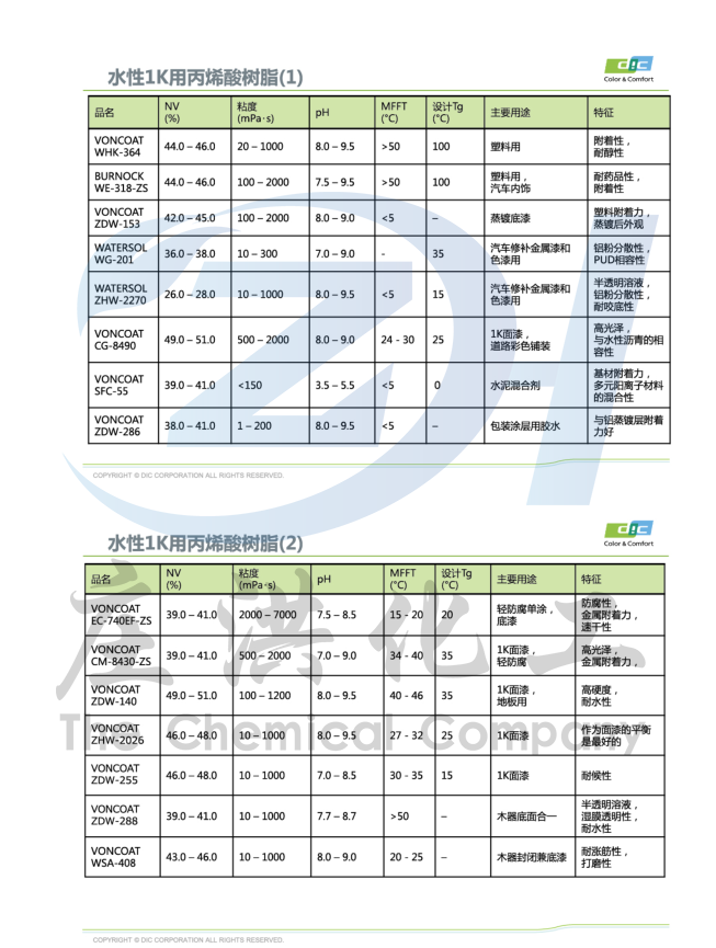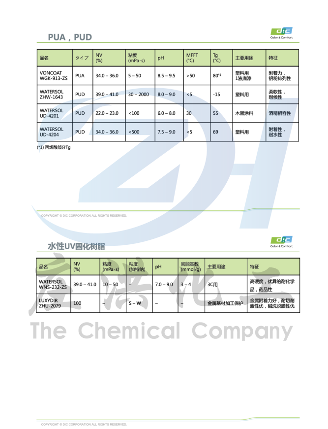 日本DIC  水性工业漆树脂   水性环氧   水性聚氨酯  水性丙烯酸  水性烤漆  水性聚酯