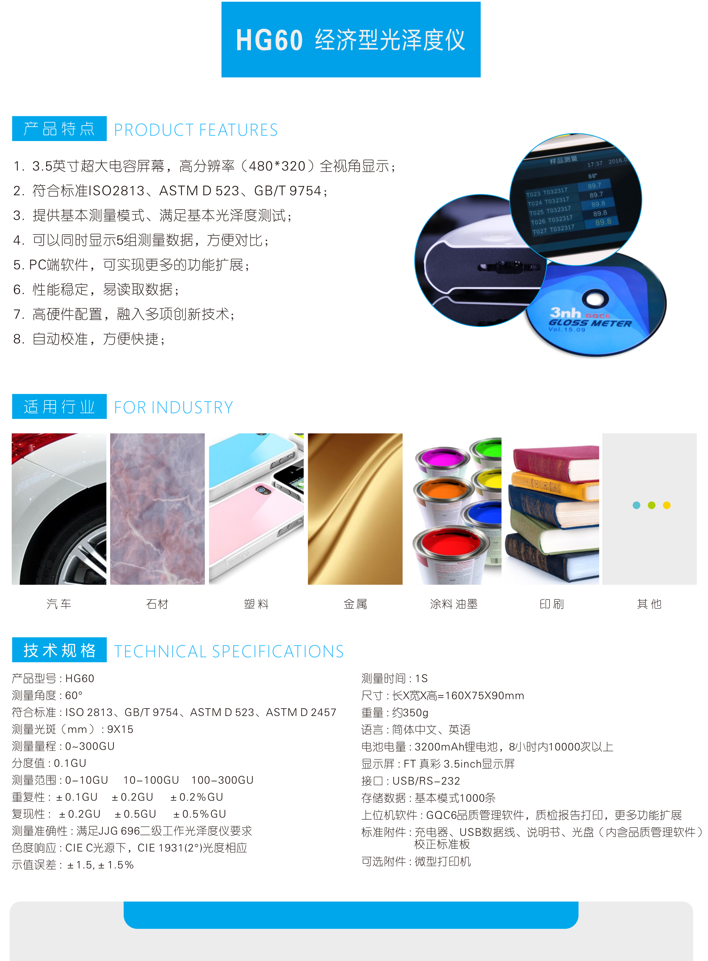 符合标准 ISO2813、GB/T9754、ASTMD523、ASTMD2457