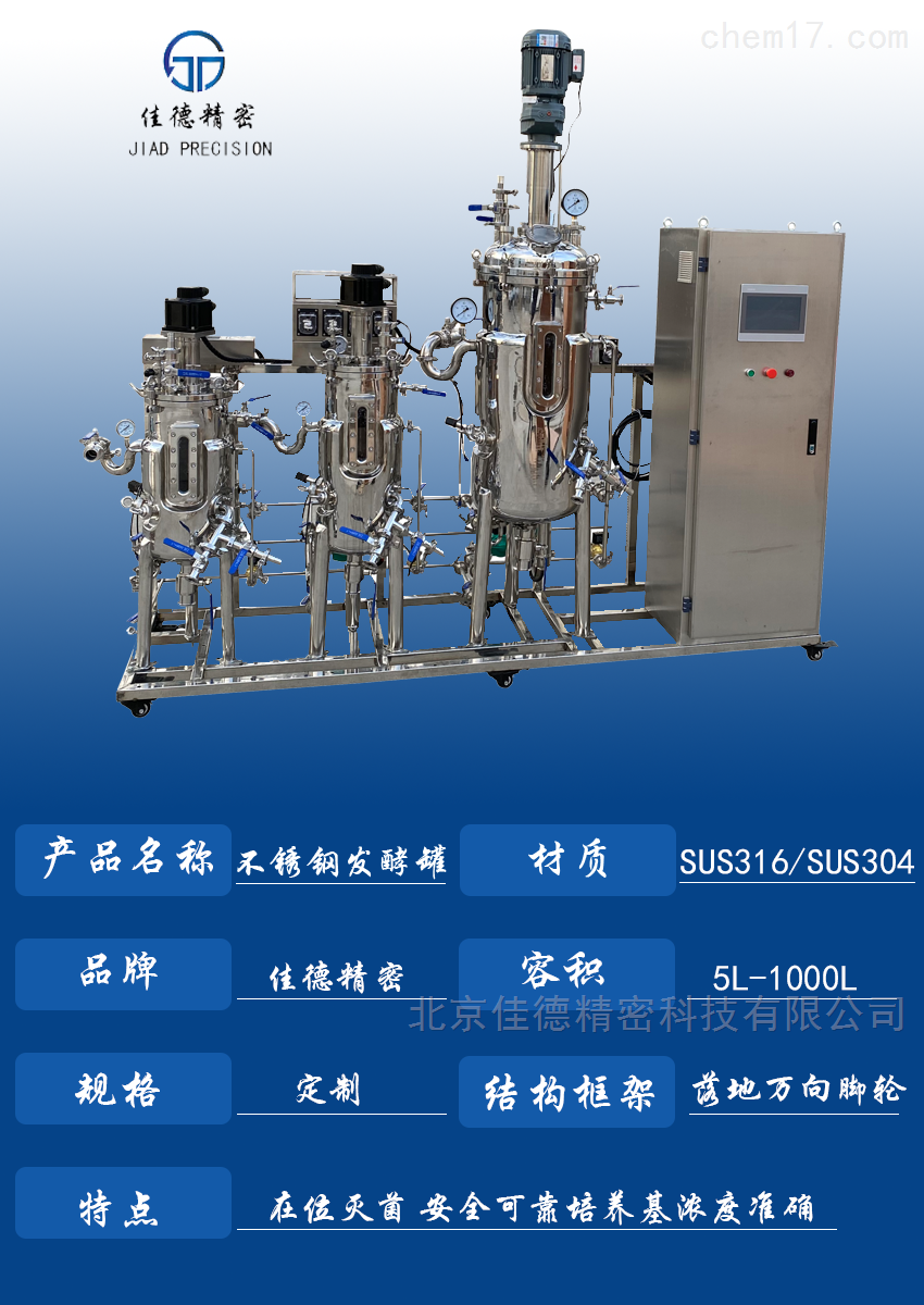 不锈钢发酵 化学反应系统 中试发酵罐系统广泛用于食品、乳品、佐料、酿造、饮料、化工、制药等行业