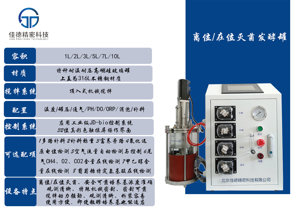 设备特点 离位/在位灭菌,安全可靠,培养基浓度准确;观测清晰,特殊机械密封,密封可靠;搅拌动力强劲观测清晰,拆装容易;使用方便。即使粗醪培养基也能适应。