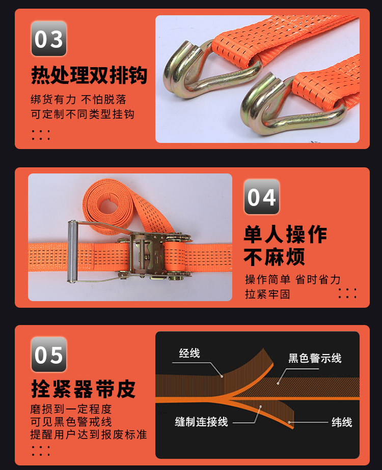 双排钩棘轮拴紧器拖车绳厂家零售批发汽车运输货物固定捆绑带