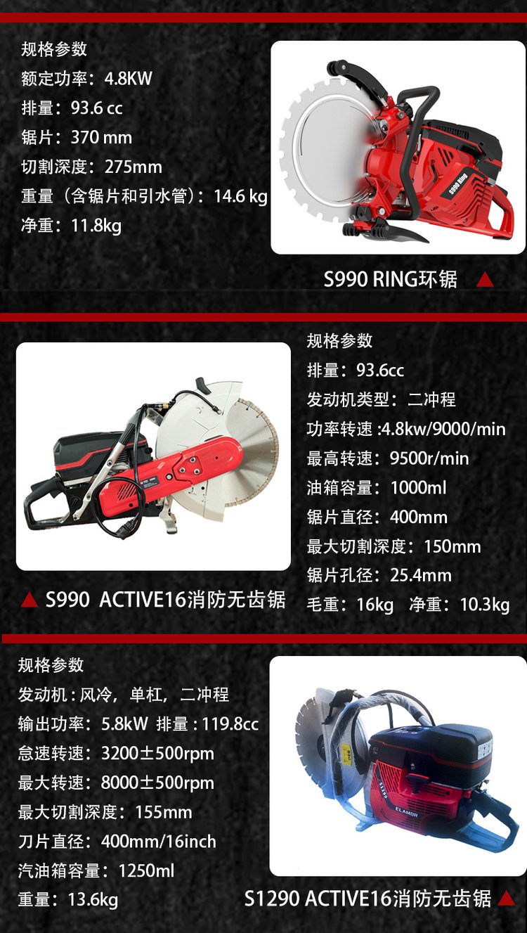 S1290 Active16"消防无齿锯功率大混凝土切割锯重量轻 品牌 | 科莱沃 | ||