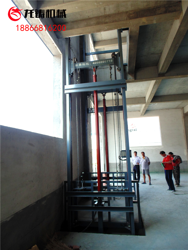 导轨式升降货梯是用于货物升降的液压升降机械设备,采用液压油缸作为主要动力,通过重型链条和钢丝绳传动,保证机器运行的绝对安全。无需地坑和机房,特别适合于有地下室、仓库改造、新建货架等,具有安装维修方便、美观、安全、操作方便。具体根据现场的实际环境生产。