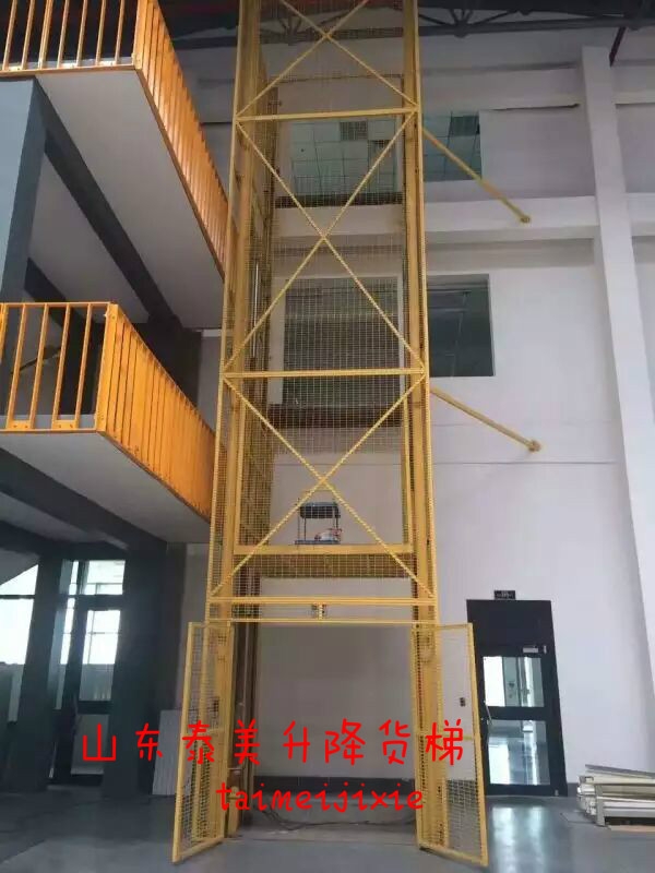 山东泰美升降货梯导轨式升降机主要用于各种工作层间货物上下运送;立体车和地下车库层高间汽车举升等。产品液压系统设置防坠、上下层门互动连锁、超载安全保护装置,各楼层和升降台工作台面均可设置操作按钮,实现多点控制。