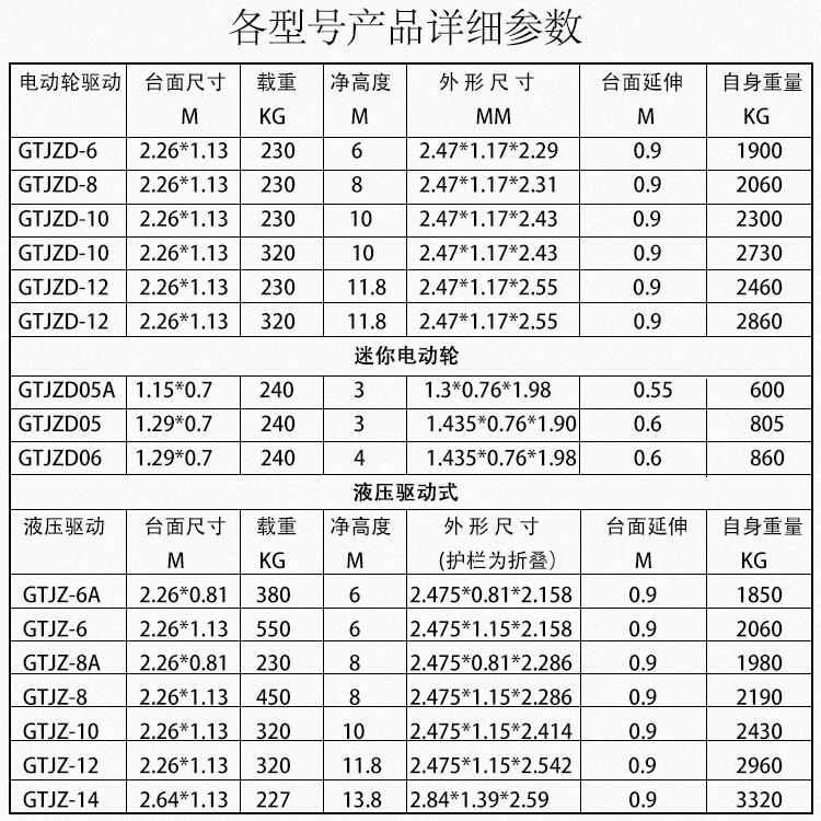 自行式移动液压升降机直流电动驱动轮具有自锁功能,驱动轮工作时刹车分离,不工作时自动锁定。