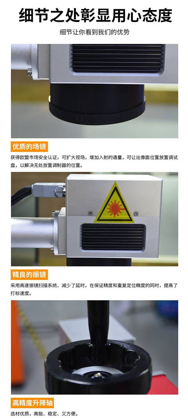 ?不锈钢打彩色:采用端泵或者光钎激光器打标,频率20KHZ~60KHZ,功率要很稳定。正离焦2mm,速度:30mm/s—100mm/s,可以打多次。