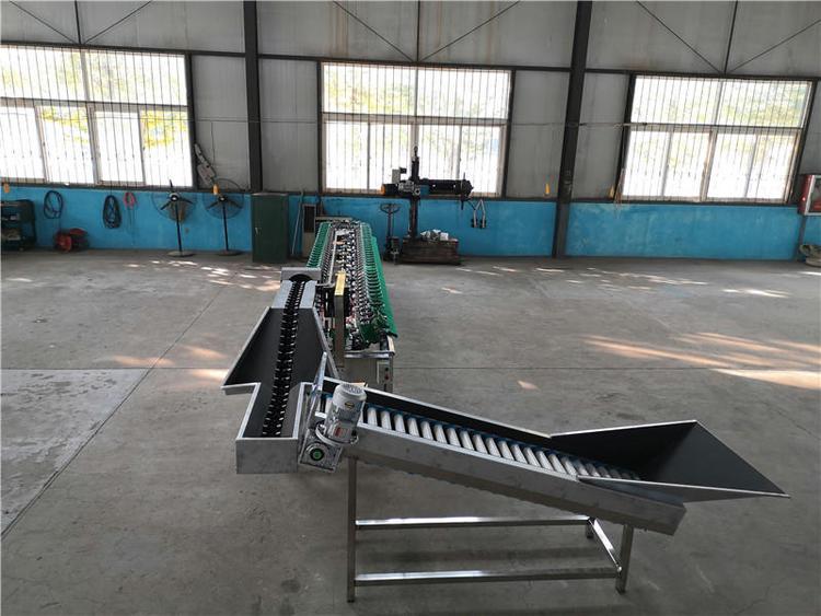 8、选果机先进的预排列技术。只需人工将水果倒在输送带上或上料斗,机械自动将水果进行排队,一个一个落入果盘进行称重分选。