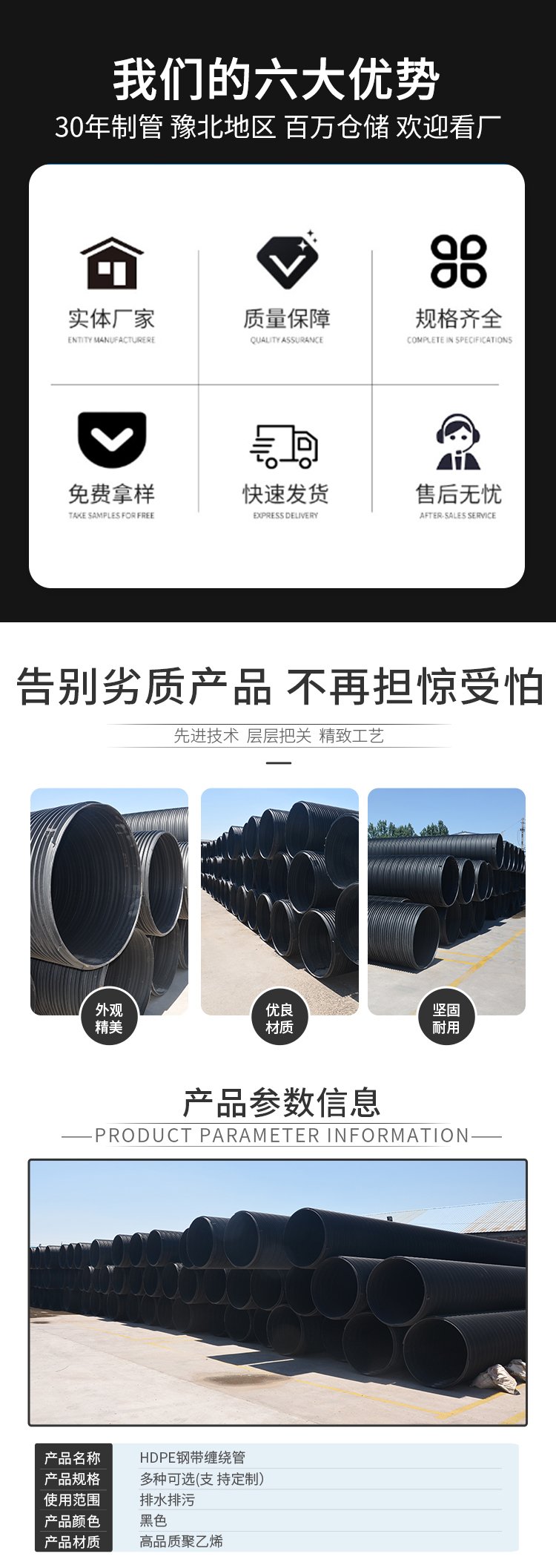 强度高HDPE钢带缠绕管兴高管业抗压流水阻力小