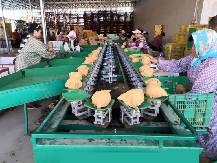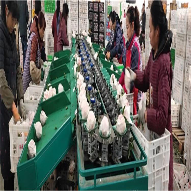 红美人选果机的分选速度快, ,无需人工一个一个将果实摆在称重去,只要把果实倒在上果输送平台,然后由输送带分选上果,经过自动上果机械手将果实摆在上果果盘内,经过称重区,砝码设定,将果实按照重量分选大小等级,按照客户设定好的重量分选出来的果实,同规格的大小均匀统一,包装漂亮,有利于市场的售卖和收益的提升。