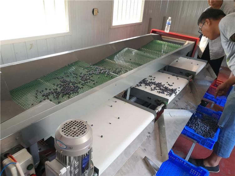 新型蓝莓选果机、蓝莓分选机在代蓝莓分选机的基础上进行改进,更贴合蓝莓本身果粉在分选的过程易受损的特点。通过低高度传输皮带对已分选出的蓝莓进行传输,保护蓝莓的花青素不受损伤,延长蓝莓的保鲜期。??