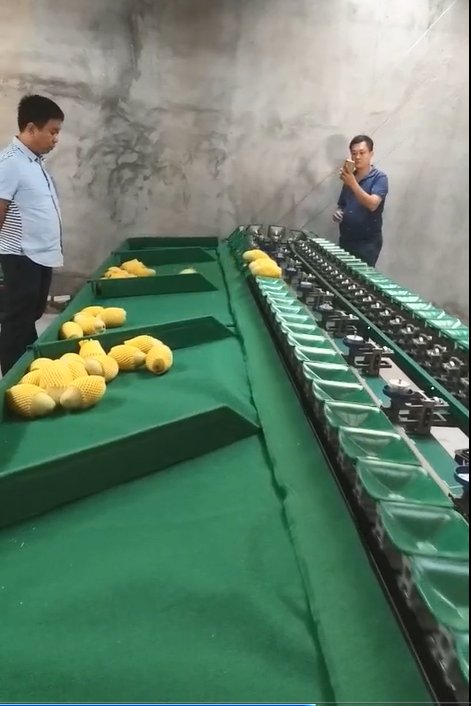 8、先进的预排列技术。只需人工将水果倒在输送带上,系统自动将水果进行排队。