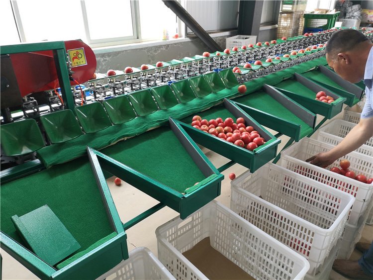 3、百香果选果机先进的预排列技术。只需人工将水果倒在输送带上或上料斗,机械自动将水果进行排队,一个一个落入果盘进行称重分选。