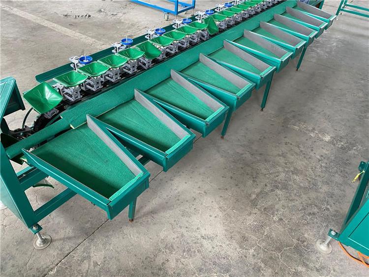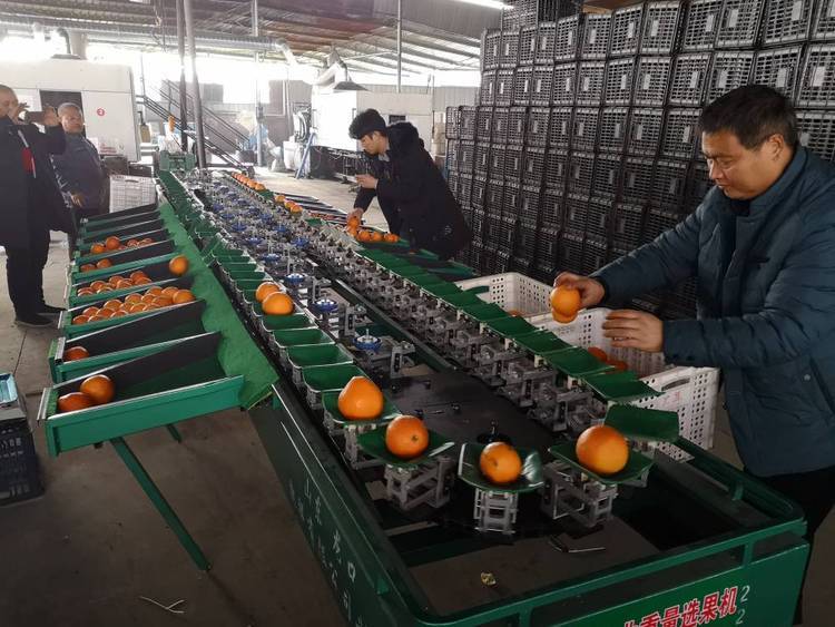 柑橘分选采用专业的柑橘分选机选果机,柑橘选果机采用杠杆天秤进行重量分选。柑橘分选通过自动上果提升装置落到相应的果盘,进行游离式分选,大于砝码的重量落到相应的下果区,低于砝码的重量进行移动,直到相应的砝码重量区,通过重量分选分出等级。通过柑橘分选选果机分选出来的柑橘,重量准确,提升市场价值。