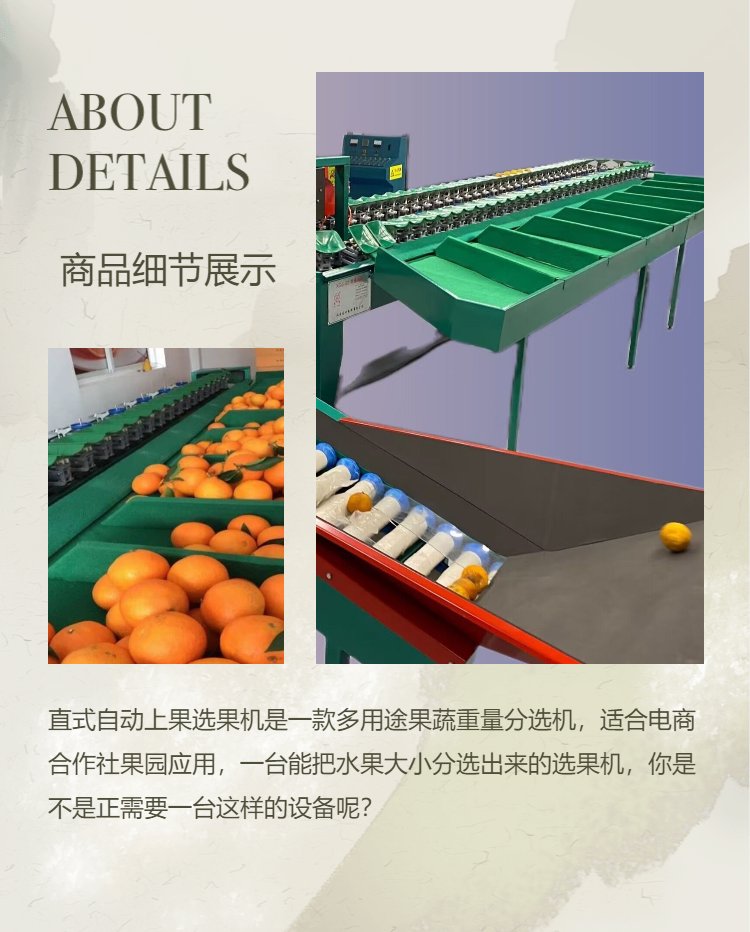 设备适合分选水果 | 苹果、释迦果、柠檬、红美人、猕猴桃重量分选 | ||