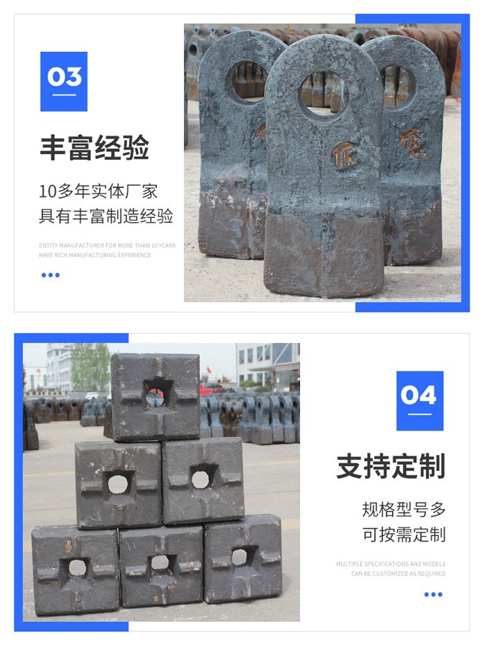 立式复合破碎机高铬合金锤头抗压强度高规格齐全