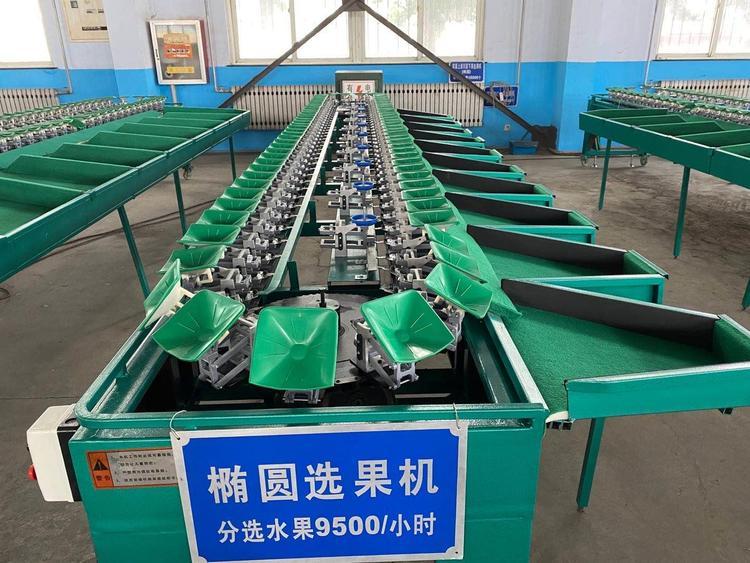 选果机分选原理:采用天平与杠杆原理,利用盛料器重量与砝码器所设定秤量,以游动时的移位与测量达到选择重量的分等分级。在全自动的传送中,快速正确的对各种需要测量的分级果蔬,例如梨、苹果、芒果、桃、柑橘、沙糖桔、猕猴桃、西红柿、马铃薯、地瓜、李子、柿子、洋葱等,产生准确的分级。不但秤量准确,而且具有不伤果实,效率高,易操作,使用范围广等特点,更能提升果品品质,增强果品市场竞争力,是农产品分级制度的机器设备。