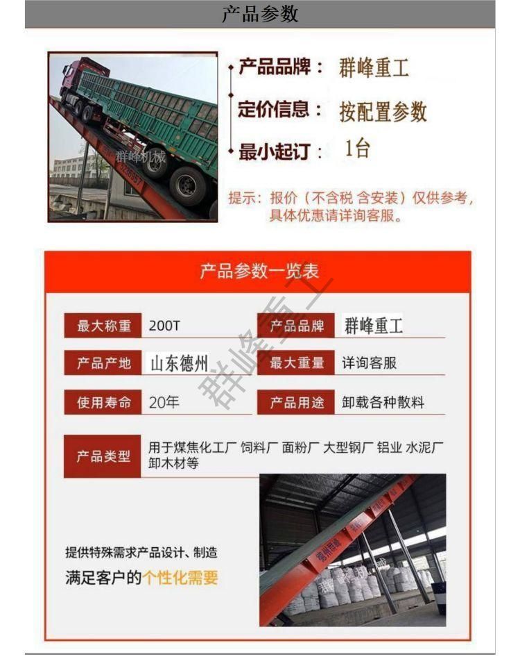 群峰重工自动化操作砂石卸车机100吨基坑式安装后翻式液压翻板机