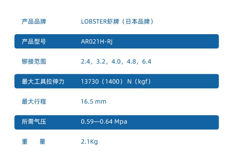 LOBSTER日本虾牌气动铆钉枪 AR021H/AR021H-RJ 拉铆枪 品牌 | LOBSTER | ||