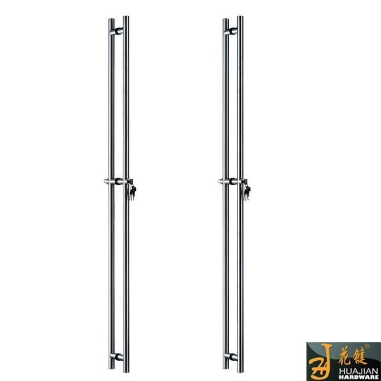 花键五金不锈钢拉手锁别墅玻璃门带锁把手02D不锈钢天地锁