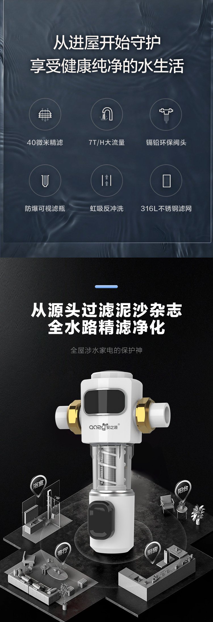 安之源(anzy)全屋自来水自动巡航刮洗功能不锈钢网大流量管道滤水铜前置过滤器SC-Q2