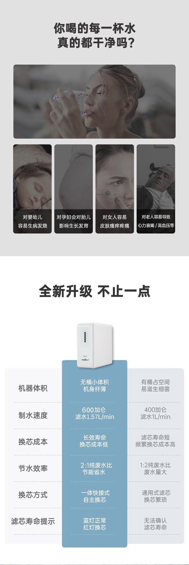安之源(anzy)出水直饮RO反渗透大通量除细菌杂质带耗材提醒功能家用净水机A600