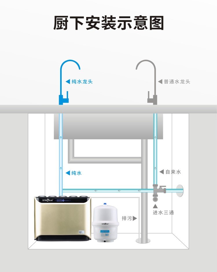 安之源(anzy)厨房过滤器自来水直饮净水大通量出水节水型纯水机A7款