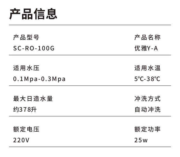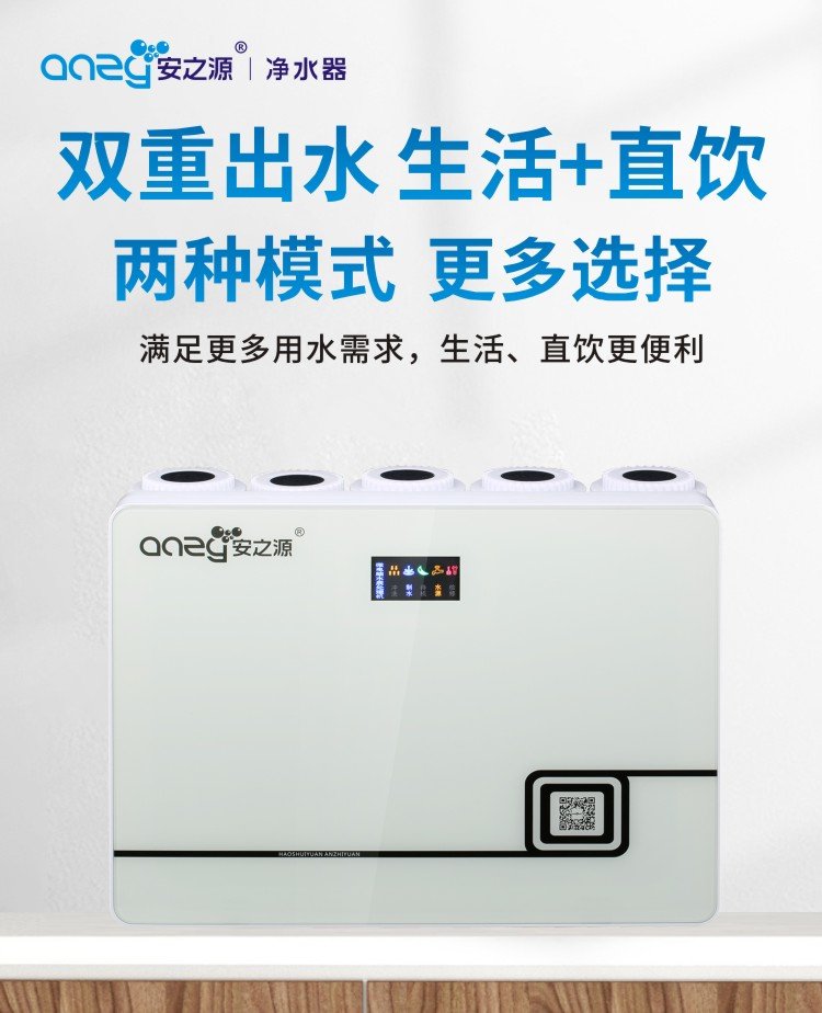 安之源(anzy)新一代节能净水器家庭厨房RO纯水机雅白Y-A型SC-RO-100G自来水直饮机