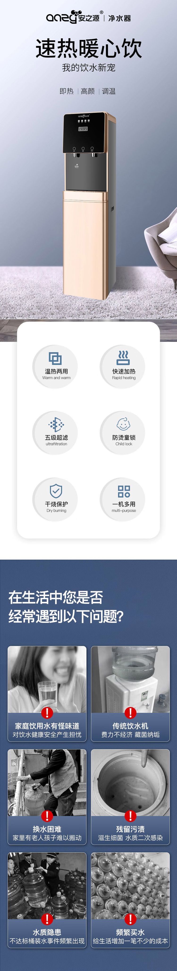 安之源出水直饮系列RO反渗透集过滤加热一体五级过滤秒出热水净水器L1