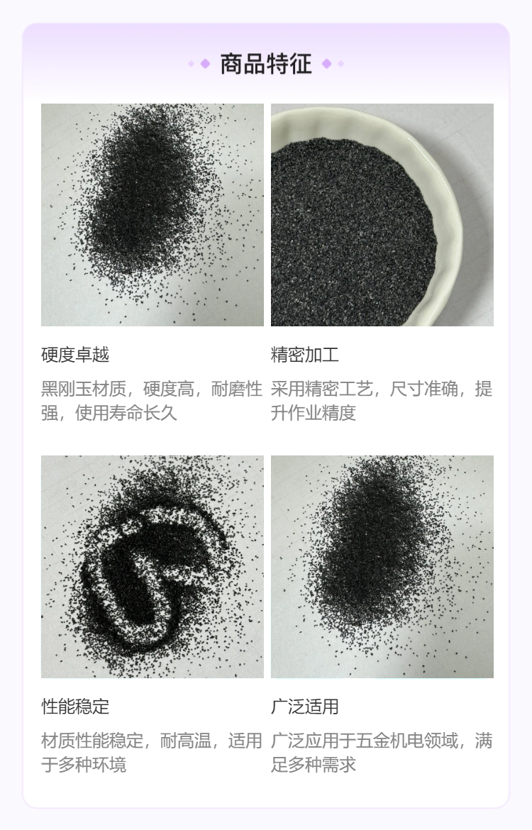 功能用途 | 黑刚玉是一种经过高温高压人工合成的超硬材料。其硬度接近天然钻石,比其他人工合成的超硬材料如氧化铝、碳化钨等硬度更高,可用于制作锐利的切割工具和高硬度耐磨件等领域。 | ||