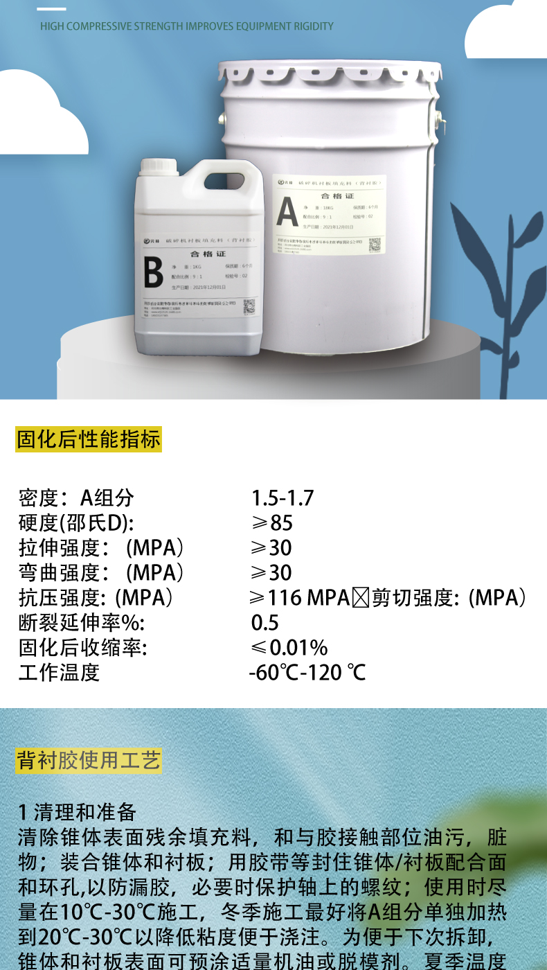 用途范围 | 破碎机衬板填充 | ||