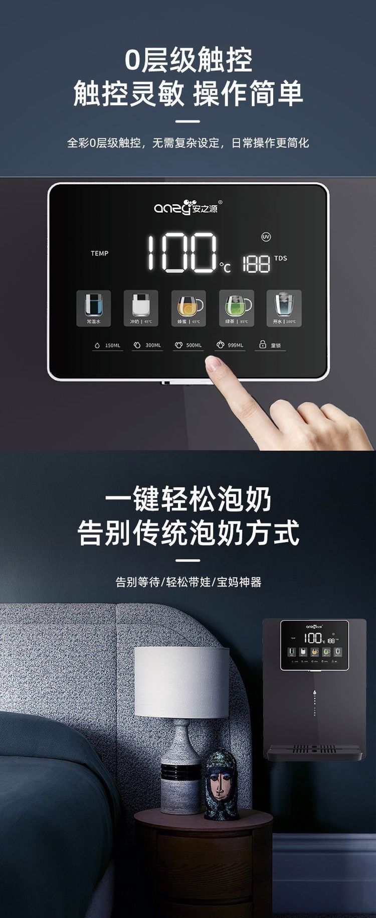 安之源(anzy)三秒出热水多档调温触摸板贴心童锁壁挂式更省空间SC-GX-5Pro