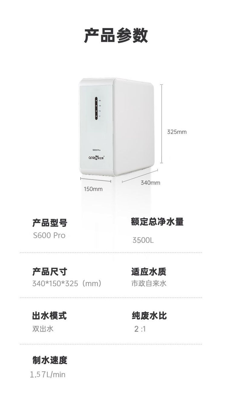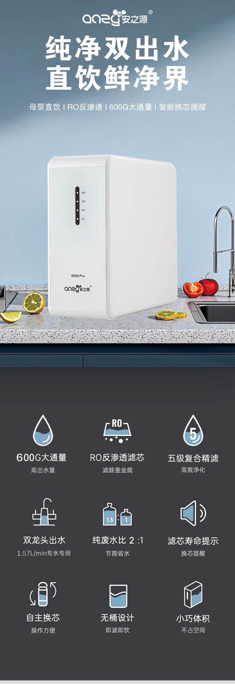 安之源(anzy)大通量反渗透RO净水器直饮净水机自来水出水净化S600Pro