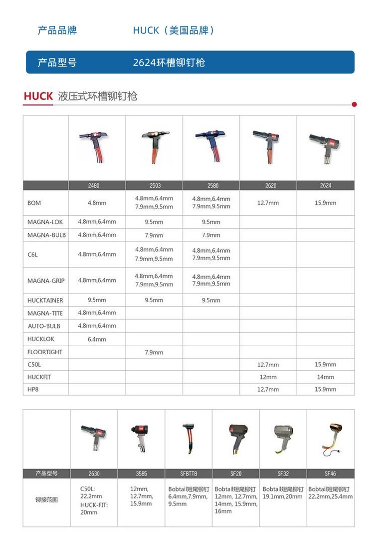 HUCK美国环槽铆钉枪2624气动拉钉枪拉铆枪维修